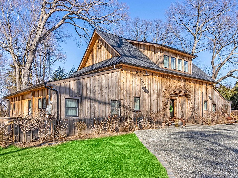 Huntington Bay. This impeccably renovated Hamptons-style barn, originally dating back to 1860, has been thoughtfully reimagined to meet the highest standards of contemporary luxury. Located within the highly sought after Nathan Hale Beach Association (dues req), this residence seamlessly blends modern elegance with timeless charm. Set far back from a quiet drive, the professionally landscaped one-acre flat property is approached via a gracious gravel driveway, offering an impressive introduction to the home. The new white pine exterior lends the residence a distinctive and sophisticated look. The inviting entry foyer, with its double-sided gas fireplace, sets the tone for the home’s warm and airy ambiance. The chef’s kitchen, designed for both functionality and style, boasts new quartz countertops, stainless steel appliances, and a designer backsplash. Adjacent to the kitchen, a patio is surrounded by a fenced lawn area, perfect for outdoor living. A spacious living room/den with a wood-burning fireplace and coffered ceiling adds to the home’s allure. The main level also offers three beautifully appointed bedrooms, a full bath, a formal powder room, a first-floor laundry, and a gym. The second-floor primary suite is a true sanctuary, offering a serene open space and a spa-like bathroom, complete with a double marble vanity, soaking tub, designer shower, and two large closets. The suite’s private terrace and balcony provide sweeping views of Northport and Huntington Bay, creating an exceptional retreat. Additional highlights of this home include a brand new detached two-car garage with a second-floor office, a newly installed in-ground gunite pool with a stone patio, and an outdoor oasis ideal for relaxation and entertaining. Notable upgrades include new fencing, a new roof, and new windows. This residence exemplifies luxury living in a coveted location, offering the perfect balance of privacy, style, and convenience.