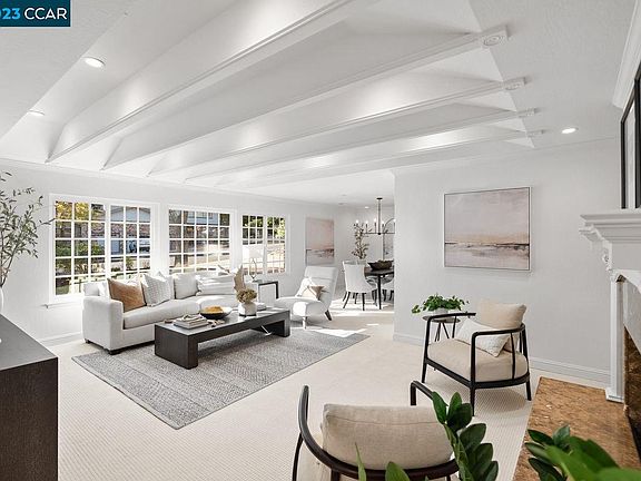 This home (and accompanying guest house/ADU unit with kitchenette) sits on a rare half-acre (+/-) flat lot, surrounded by soaring redwoods and other mature trees. Refinished red oak hardwoods grace the home throughout. The kitchen, offering ample cabinetry (supplemented by even more cabinets in a pantry nearby), island space, two sinks, and a wine refrigerator, leads gracefully to a breakfast nook (easily accommodating 4) and comfortable family room, facing a large brick fireplace. The kitchen on the other side adjoins the formal dining room, bar and living room, and is warmed by its fireplace. Serve guests with wines selected from temperature-controlled wine room, equipped to store more than 225 bottles. The family room leads outside to the deck, barbecue, swimming pool, garden, sport court and bocce court. The principal suite, with an elevated ceiling, has its own fireplace, a spacious walk-in closet, a tiled bathroom with well-appointed shower, separate Jacuzzi bathtub, and dual sinks. The other bedrooms all feature garden views. The home offers easy access to BART and to the 24 freeway east to Walnut Creek or west to San Francisco. The home exemplifies exceptional indoor-outdoor living. PLEASE VISIT WWW.2CharlesHill.COM for detailed information.