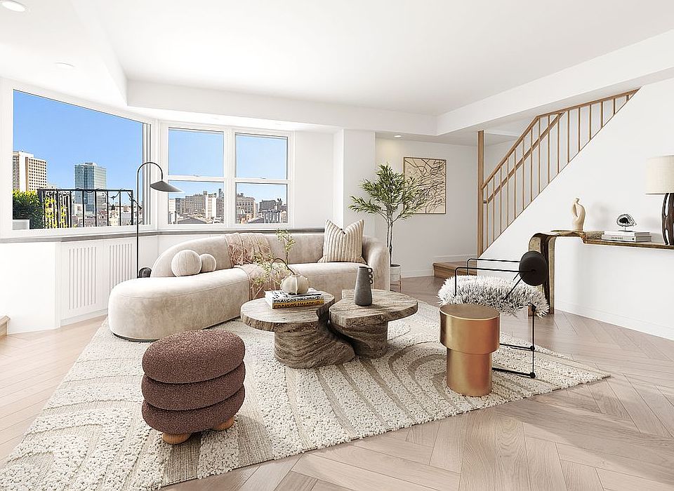 Introducing Penthouse 16F at 2 Charlton Street is a luminous two-bedroom, two-and-a-half-bathroom duplex with a rare, sprawling private terrace, perched high above one of SoHo’s most picturesque, landmarked blocks. With four stunning exposures - east, north, south, and west the home frames iconic skyline vistas including the Empire State Building and Midtown towers, all visible from both the living spaces and bedroom level. Sunlight floods in through oversized windows in every room, cultivating an atmosphere that is serene, stylish, and distinctly elevated.