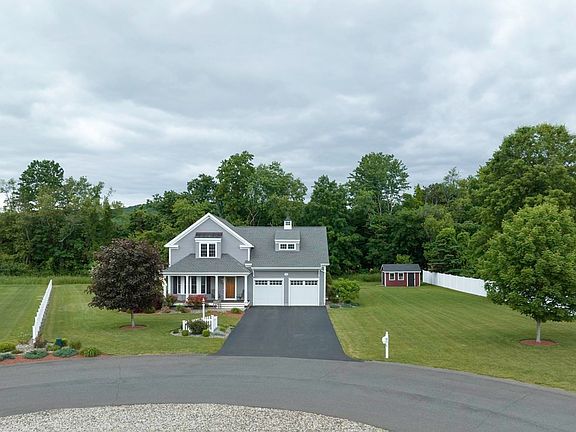 Tucked in a quiet cul de sac w/just 3 other homes, this well built contemporary offers plenty of space, a 1st floor primary suite, verdant large lot, & more. The 1st level features an open living/kitchen/dining area w/ a bay window, gas fireplace, granite countertops, SS appliances, breakfast bar, & great storage, including a pantry! The primary suite, currently used as a playroom, is large & light. Laundry is also located on this level. Sliders open to the patio, fire pit, & large yard. Upstairs: 2 more bedrooms, another full bath, & a bonus room, currently used as a bedroom, w/ potential for a variety of uses. A charming nook at the top of the stairs is a perfect place to sit with a book or a project. Partially finished basement w/ ample closets also offers flexibility -- media room, playroom, exercise area -- you decide. Large utility room w/ great storage. Efficient propane heating system, central AC, wood floors, & a good-sized garden shed. OFFERS DUE noon 6/13.