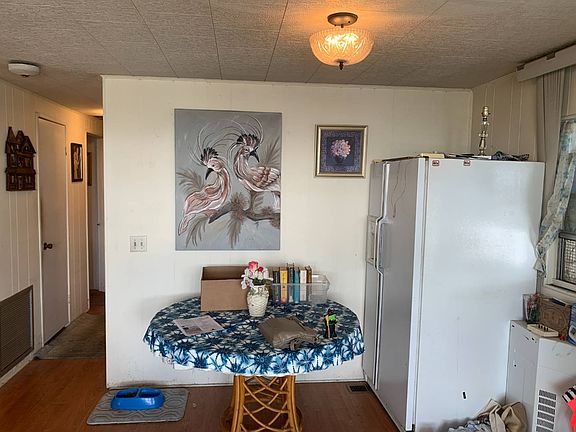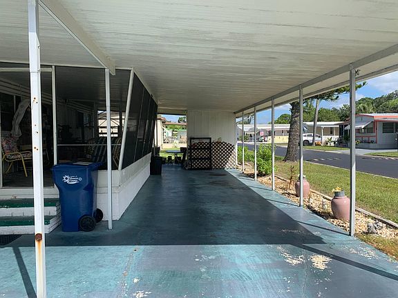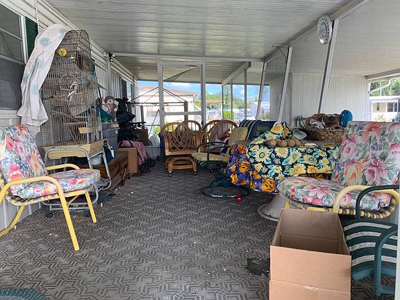 This is a mobile home for sale in a 55+, gated, community on a rented/leased lot. This is a 2BR/2BA mobile home on a corner lot that needs some TLC! The seller is motivated; bring all written offers! The kitchen is a unique C shape with a great street view from bay windows. There is ample storage. There is a formal dining area. The living room has carpet, a ceiling fan and panel walls. There is a sliding glass door leading to a 5 x 12 front set screen lanai. The master bedroom has carpet, a ceiling fan, panel walls, two closets and a built in. The master bath has vinyl flooring, a single sink vanity, linen closet and a walk in shower. The guest bedroom has plywood floors (prepped for new flooring) ,two closets, a ceiling fan and panel walls. The hall bathroom has vinyl flooring, a single sink vanity and a walk in shower. The carport can park 2 or 3 cars tandem style. There is a shed on the back with washer/dryer (included in the sale) hookups. The side set 10 x 21 screened lanai offers additional room for living, dining and entertaining. The lot rent is $572 and includes water, sewer, lawn, trash and cable. This is one of very few rented/leased lots in a resident owned community making for stable lot rent and an opportunity to perhaps buy the share. Plantation Village is a 55+ gated community with a pool, clubhouse, pickle ball, shuffleboard and monthly activities. It is close to Downtown Bradenton, services, dining and the Pirates Training Facility. The white, sandy Gulf beaches are about 9 miles west.