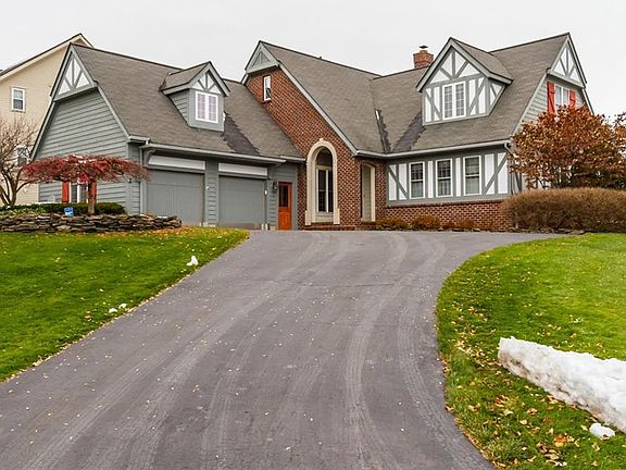 Luxury living in popular Cobblestone Creek! Idyllic setting with panoramic views of the golf course and rolling hills. Spacious open floor plan perfect for entertaining! Gorgeous formal dining room with coffered ceiling and stunning updated kitchen opens to the two story, gas fireplaced living room. Additional living space in the sprawling lower level with rec room and full bath. Three beautiful large bedrooms including first floor master suite and second floor guest suite. Move in ready! Fantastic location! Make an appointment to see this gem today!!