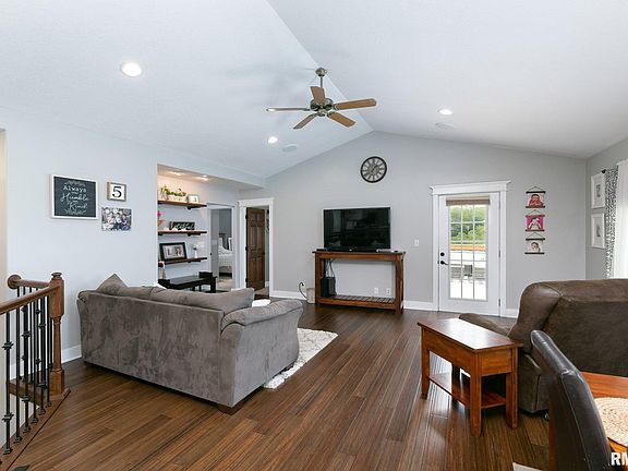 4 bedroom, 3 bath newer ranch home in rural Blue Grass' Hickory Hills! The amazing open floor plan makes this home live so much bigger than it is, wonderful efficiency! The great room with vaulted ceilings has a ton of light, sliders out to the huge deck & unique open staircase to bring your eye to so many different features! Past the breakfast bar into the kitchen, you find a massive space with brand new cabinets & quartz countertops! New bamboo flooring throughout these areas & through the barn door into the laundry room! The master bedroom features a walk-in closet, large bath with jetted tub & a slider out to the deck for morning coffee! Downstairs in the walkout basement, there is an office, Rec room, wet bar, bedroom, & a bath not to mention a ton of storage space! In addition to the deck, patio, & porch the .8 acre lot makes for an awesome entertaining space outside when the weather is too nice outside to enjoy the inside of this one of a kind home! Call today to take a peek!