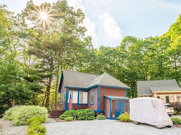 The Perfect Summer Home! Formerly Wyman's Beach, Summer Village Westford is a gated seasonal condo community of single-family cottages nestled around Long Sought for Pond. Ideally located about an hour from Boston & minutes to NH this resort style retreat is truly the hidden gem you've been looking for. This one of a kind Fernwood cottage is nestled by the trees yet still only a stones' throw to all SV has to offer. Craftsman's touch abounds. Large patio, private wooded lot, custom shed, beautiful landscaping & peek-a-boo water views! The spacious kitchen connects seamlessly with the living room creating a truly open concept with room for all. The well appointed bedrooms lie on opposite ends of the home to maximize privacy & function. Primary with attached 1/2 bath, secondary with custom built-ins & Murphy Bed! Easy care vinyl flooring, ceiling fan, central heat/ac & in-unit laundry. Enjoy heated pools, pond, beach, fishing, pickleball, gym, General Store, tennis & activities for all