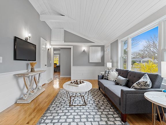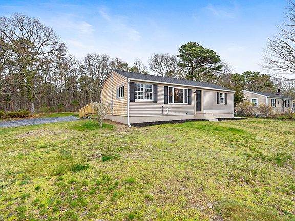 WOW! Don't miss out on this turnkey renovated ranch on a large corner lot. Stepping inside, take in the Cape Cod character of cathedral shiplap ceilings and wainscoting, and by the gleaming hardwood floors of the open concept living and dining room. The kitchen boasts new white shaker cabinets, quartz countertops, recessed lighting and all new stainless steel appliances. You'll find laundry on the main level, as well as a jack-and-jill bathroom with double vanity and all new fixtures. The primary bedroom features an additional dressing room, nursery or office space, as well as sliding doors to your own deck. A generous secondary bedroom rounds out the main floor. The basement offers plenty of bright clean storage space. Updates include a new roof, new septic system, all new wiring and plumbing, new water tank, and new gas HVAC heating system. All you need to do is unpack and enjoy summer on the Cape!