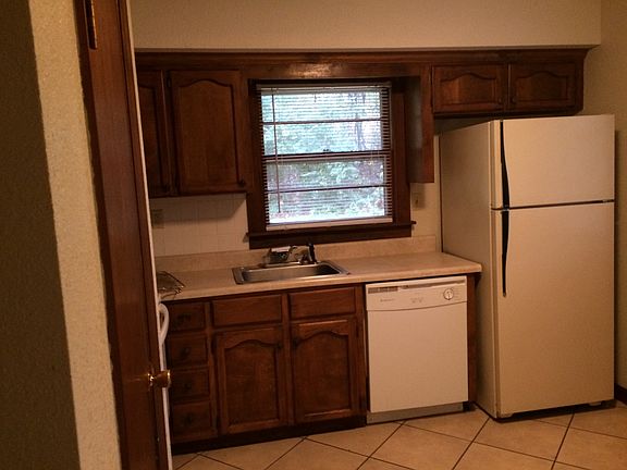 This beautiful 2 bedroom 1 bathroom unit sits just minutes from Hillcrest shopping center. Located in a quiet wooded neighborhood, this unit features a large master bedroom with a walk-in closet, a wood burning fireplace with built in bookshelves on both sides, and furnished appliances. Owner provides trash pick up and lawn maintenance, tenant is responsible for electric and water.