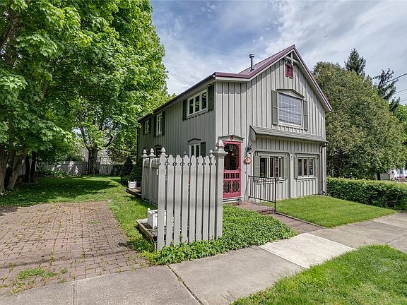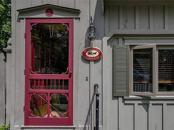 Welcome to 2 Church Street in Hammondsport! This quintessential carriage house is located on a quiet street in the village of Hammondsport within walking distance to it all. The upstairs level has hardwood floors in living area, small dining area and galley kitchen with new stove. Full bathroom, and large bedroom space with cedar closet and built ins! Downstair on the first level, a secondary living area, a bedroom/office/bonus space, a half bath and a designated laundry room. Side exterior door leads to private yard and paver off street parking. New metal roof! Well maintained and absolutely adorable!