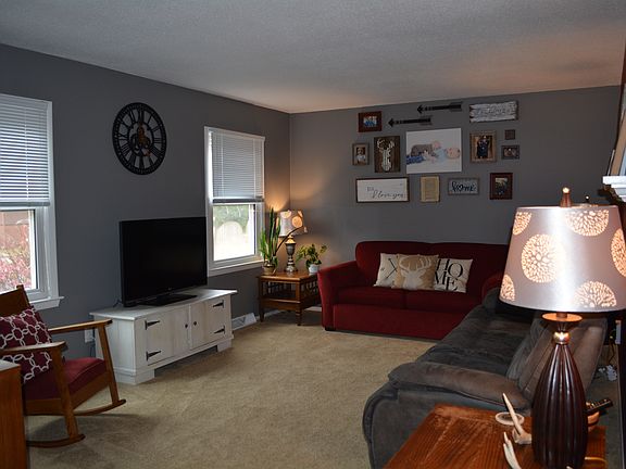 Small town living at it's best! Well maintained 3 bedroom, 2 bath ranch home with an attached two car garage on a dead end street. Great floor plan with large living area, kitchen that opens up to dining room that could easily serve as a family room and has a renovated stone gas fireplace. Other updates include garage door opener, laminate floors, carpeting in living room, new 10x12 shed, many new ceiling fans, replacement windows, receptacles and switches replaced. Awesome 4 season sunroom overlooking the large lot.