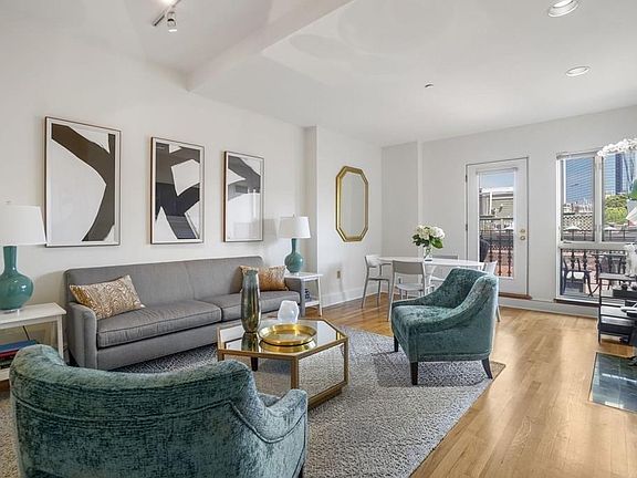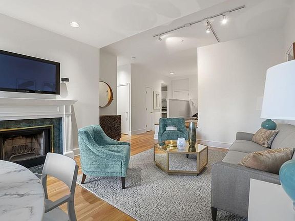 TWO BEDROOMS PER PUBLIC RECORD, SECOND BEDROOM WITH CLOSET IS OPEN AREA AND COULD BE ENCLOSED. GREAT FOR OFFICE, GUESTS, NURSERY (as shown) or DINING. Main living area features high ceilings, a wood-burning fireplace and direct access to private balcony with exceptional city views. Bedroom can accommodate a king bed and has a closet system. The galley-style kitchen has new stainless appliances. Recent updates include: bathroom renovation (2017), washer/dryer and dishwasher (2019), one heat pump, refrigerator, range, vent hood, new switch plates and new paint throughout (2020). Hardwood, central air and private outdoor space add beauty and comfort. A lovely common roof deck with expansive city skyline views and an inside common sitting area are for residents/guests to enjoy. Situated in prime South End location with access to restaurants, SOWA, shopping, public transit, highway, and your city lifestyle. Rental parking available. SHOWING ONE PARTY AT TIME EVEN AT OPEN HOUSE.