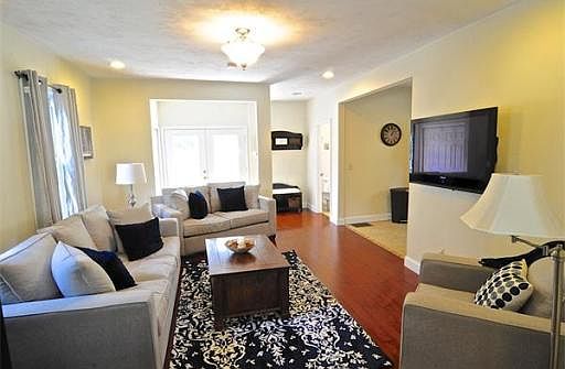 You will be blown away when you walk through the front door of this beautiful house, renovated in 2009. It has a super cherry kitchen with stainless steel appliances, recessed lights, granite counter tops and tiled flooring. The living room has recessed lights and opens onto a 10x10 deck at the rear, large closet to the left and half bath with laundry on the right. The dining room has a center light with a ceiling fan. The master bedroom has a center light ceiling fan and walk-in closet. Carpet on the second floor, cherry footing on the first floor and tile in kitchen and half bath with laundry. Central A/C makes this comfortable in this heat!!. This house was connected to GAS in the street a few yrs. ago..