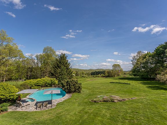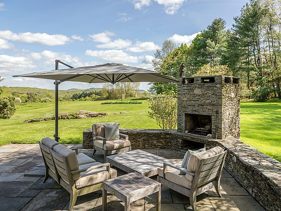 Modern farmhouse on six pastoral acres with sun-filled open interiors and scenic vistas from every room overlooking distant hills and protected fields. The open floor plan flows from room to room with expansive walls of windows and glass doors leading to spectacular outdoor spaces, including bluestone patios, two Brazilian ipe decks, an outdoor kitchen with built-in smoker and grill, stone fireplace/seating area and a spectacular refurbished gunite pool - all providing the perfect setting for entertaining and creating memorable gatherings. The home's gourmet kitchen features Carrera marble countertops, glass tile backsplash and a six-burner dual fuel Wolf range. The master bedroom features a stone fireplace and a newly renovated master bath with heated floor and towel rack, a beautiful soaking tub and a glass tile walk-in shower. There is wood flooring throughout the two main levels, plus a large finished attic with full bath offers office, media and/or spillover bedroom space. Southern exposure bathes the home with light and sun and offers energy saving passive solar conditions. The elegant setting and landscaping provide complete privacy amid the beautiful views and serene bucolic atmosphere. Many recent improvements, including a new roof in 2018. Located just 5 miles from Metro North trains, within walking distance to the Appalachian Trail and less than 90-minutes to Manhattan.