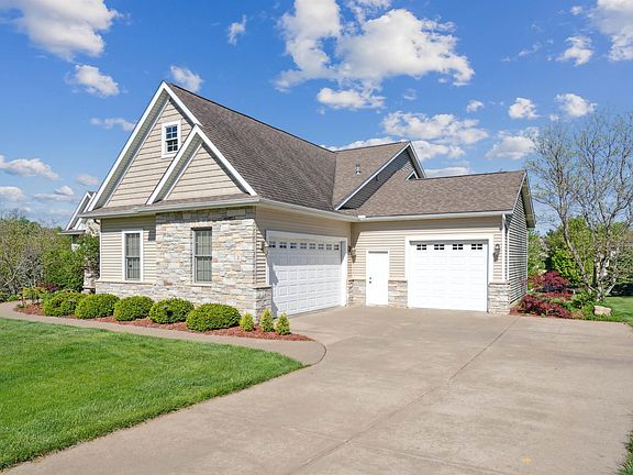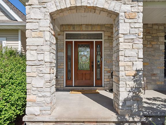 Golfers Dream! Beautiful 5 BR, 4 BA custom built sprawling RANCH perfectly positioned on over 1/2 acre lot. You'll fall in love w/ the FANTASTIC year around views of woods & golf course! GORGEOUS hickory hardwood floors, 12 ft. ceilings, crown molding, 3 fireplaces & built-ins galore. Wake up to serene golf course views in tranquil & roomy primary suite with FABULOUS floor to ceiling windows, direct access to backyard deck, walk-in tile shower, & large primary closet. BRIGHT & CHEERY 4 Season Rm, adjacent to Hearth Room & updated kitchen w/ quartz counters, new refrigerator & gas range 2024, & subway tile backsplash. All baths have been updated! Nicely finished walk-out lower level w/ teared Theater Rm, Rec/Game Rm/Bonus Space, custom Wet Bar, Family Rm, full Bath & 2 BRs. Professionally landscaped yard w/ deck and patio. 3 car heated side load garage. Golf cart access to Pebble Creek Course & Davenport Country Club. Awarding winning Pleasant Valley Schools!