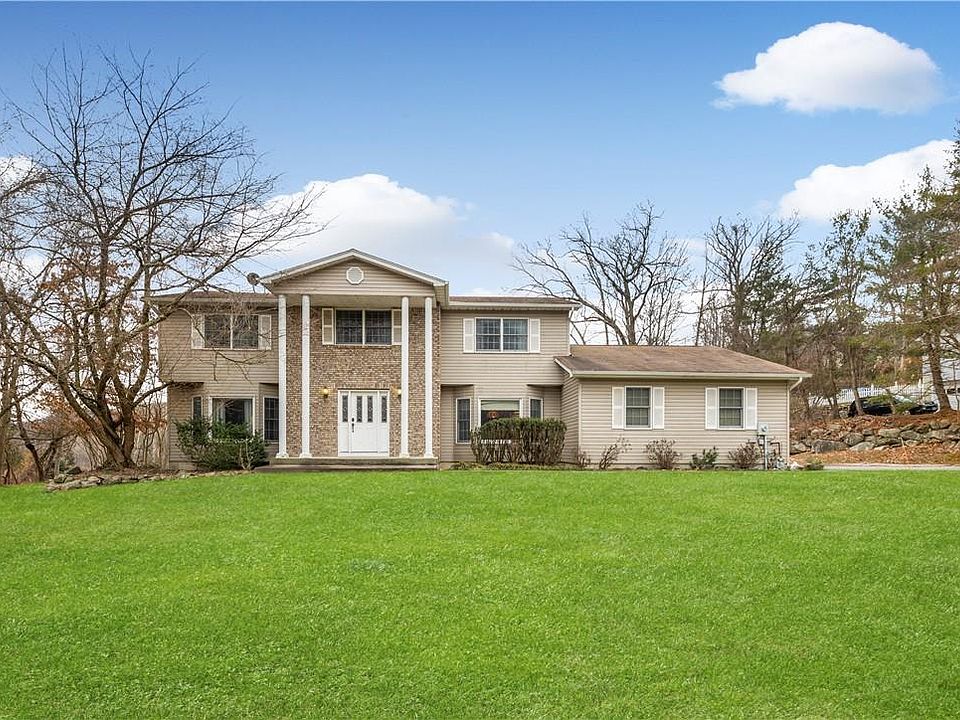 This beautiful center-hall colonial rests on over an acre of land on a lovely, quiet street. Enter a bright and inviting foyer with an attractive open staircase. There is a powder room and coat closet within this area. To your right, you’ll find a large formal dining room with French doors and picture windows. To the left a formal living room with matching picture windows. The massive eat-in kitchen offers much counter and storage space, plus access to the backyard. Next, you’ll find a great family room with a cozy fireplace and slider to the deck. Take in beautiful mountain views as you relax in your backyard. Guests and extended family can utilize a first-floor bedroom. A convenient laundry area and access to the garage complete this level. Up to the second floor, you’ll find 3 well-sized bedrooms and a hallway full bath with double sinks. An enviable primary suite offers a beautiful bathroom with a deep soaking tub and shower, plus a huge walk-in closet. Skylights in the primary bedroom, family room, and second-level hallway offer gorgeous natural light. The unfinished basement has much-untapped potential to make it your special place, with high ceilings and more. The home is waiting for your personal touches, don’t let this dream property pass you by! Additional Information: Amenities:Storage,ParkingFeatures:2 Car Attached,