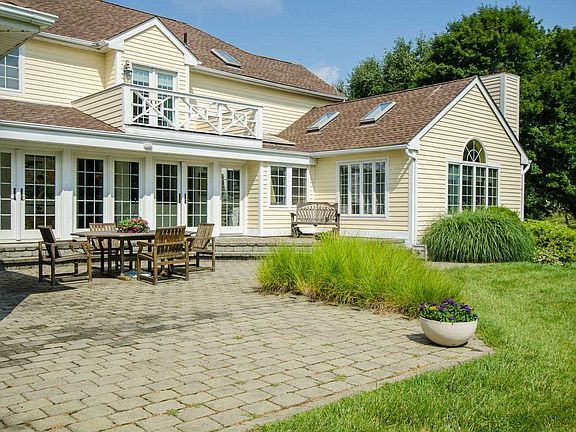 A dramatic two-story foyer, opening to views of the dining room and pond beyond, welcomes you into this sophisticated home built with entertaining in mind. The glass-walled gallery unifies a striking great room and cozy family room, both with wood burning fireplaces, offering fluid spaces for family and guests. Extend your enjoyment to the outdoors on multi-level patios, all with bucolic pond views. Continue on the first floor into an elegant living room with fireplace, chef's kitchen and, high on the list of amenities, a guest bedroom and full bath. The home's second floor features a spacious master suite with fireplace and luxurious marble bath. There are three additional bedrooms, one of which opens onto a private balcony overlooking the pond with complete privacy for sunbathing or simply taking in the pastoral views. Located in a wonderful family neighborhood, 1.5 hours to Manhattan, close to shopping and schools.