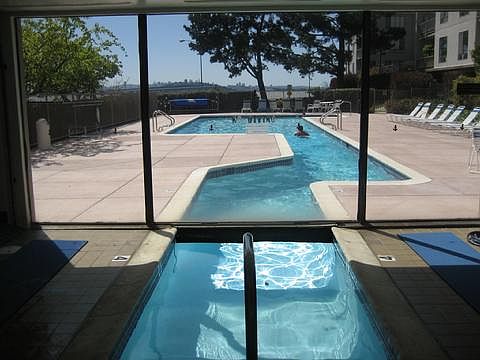 The very large, corner unit is located in the Watergate complex, just east of the Bay Bridge in the cutting-edge City of Emeryville - your commute just doesn't get any easier than this!The unit is on the top floor and measures more than 900 square feet - larger than some 2-bedrooms in the same complex! Being a corner unit, enjoying excellent cross breezes, yet protected from the direct bay wind, this unit also faces south and east - making for wonderful sun and warmth thoughout the day. The views are personal, and include bay views as well as the Oakland city skyline and Oakland hills in the distance - right from the very large living area! The interior of the unit has been well cared for, and compliments its surroundings. There is abundant closet space, as well as a walk in closet and storage room off the bedroom.The complex is spread out on over 26 acres of lushly landscaped grounds, all in a bayside, marina setting - wrapped on the north side with a rustic (and romantic) boardwalk. Amenities abound and include 4 heated pools, 2 jacuzzis, racquetball and tennis courts, saunas, steam rooms, a full gym and clubhouse - there's even billiards! HOA dues are comprehensive and include all of the above, as well as assigned parking, water, hot water, sewer, garbage, 24-hour security and even cable TV!To view this or any other east bay housing opportunity, call Jason Crouch, Broker with All East Bay Properties, today at 510-450-3807.