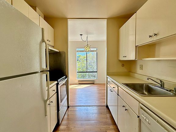 Upgraded ceilings for this sweet Top-Floor Corner unit condo at the lovely Watergate complex! Spacious and bright living room with an enclosed patio. High quality SPC Vinyl planks throughout. Unit has a dishwasher and garbage disposal. Rent includes water, sewer, garbage, one assigned parking space and cable TV. This condominium is part of the Watergate Community Association. HOA Amenities all included in the rent are: 4 swimming pools (2 heated year round), 4 tennis courts, indoor and outdoor hot tubs, racquetball courts, exercise conditioning room and gym, men's and women's saunas, steam rooms, showers and changing rooms. Stroll beside the bay on the boardwalk or cross the street to the bay trail which leads to the Emeryville Marina. All modes of public transportation are available out your door. There is a free shuttle to BART and the AC Transbay bus. Many freeway on-ramps within a half mile of the property and the AMTRAK train station is approximately one mile away. Randy's market next door is open 365 days a year, A UPS store, Grocery outlet and a Dentist right down the building! Bay Street, AMC Theaters, Trader Joe's, the Emeryville Public Market and many popular restaurants and coffee shops within walking distance. Whole Foods is 3.2 miles away. Berkeley Bowl is 2 miles away. Utilities included: Water, garbage Utilities not included: PG&E Pets: No pets, sorry Laundry : App-operated commercial size machines Lease term: 1-year Parking: 1 covered parking space Appliances: Refrigerator, Stove, Dishwasher, Window Coverings Flooring: Carpet, Laminate Application fee: $50 Heating : Electric baseboard Cooling: None Amenities included: Gym, Pools, Hot Tub, Tennis Courts, Saunas, Steam Rooms Steam Room, Secure Package Room Tenant is responsible for the $300 registration fee with Watergate. Auguste Vende, Broker DRE#02090399 All East Bay Properties DRE#01516255 *We are an Equal Opportunity Housing Provider and follow all fair housing laws.