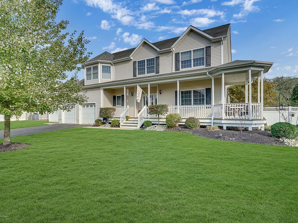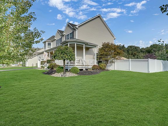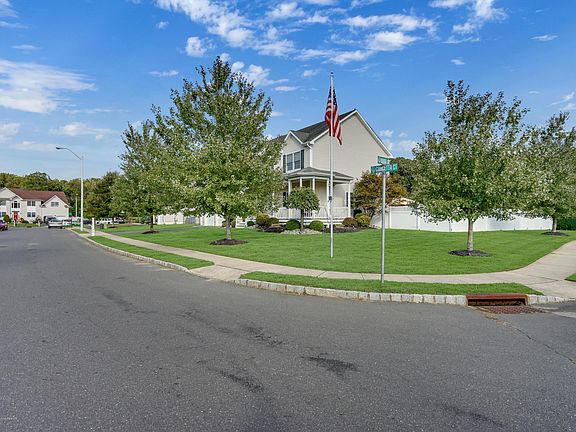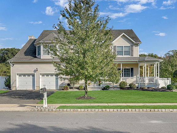 A covered porch and 2-story grand foyer welcome you to this impeccably maintained 4 bedroom, 2.5 bath Colonial located on a desirable cul-de-sac in Ramtown. An abundance of living space affords areas for living, dining, office & play. Family room has a gas fireplace & dining room boasts hardwood floors. Spacious eat-in kitchen is open to the family room & features custom cabinetry, Stainless Steel appliances, granite counter tops, island & sliders to a paver patio. Generous master suite offers sitting area, several closets and private bath with jet tub & dual sinks. Full unfinished basement, 2 car garage & shed provide plenty of storage. Unique corner cul-de-sac lot (1/3 acre) with picturesque sprawling lawn backs up to preserve for exceptional privacy. 2 zone HVAC & owned solar panels.