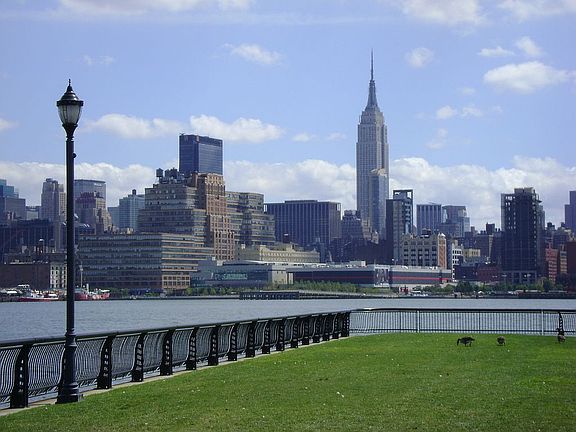 Water front location with ferry service to NYC just across street. Gorgeous 2BR/2BAth corner unit on high floor w/partial views of NYC & Hudson River. Modern kitchen with granite counters. Windows in all rooms including kitchen. 24/7 doorman, laundry in unit, roof top courtyard, gym, on site parking and pool for a fee.