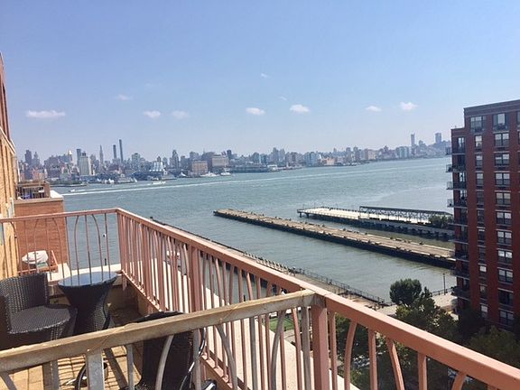 Hoboken waterfront living!! Spacious (1163 sq ft) 2br/2ba in a 24/7 doorman building featuring a modern kitchen w/stainless steel appliances, granite counters, tiled backsplash, h/w floors & private balcony from mbr w/partial views of NYC & bedrooms on opposite ends in this South/East facing unit. Building offers 24/7 doorman, gym on 3rd floor, courtyard on 4th floor, on-site parking (fee), pool (fee) and close to ferry & bus to NYC, shops, restaurants, marina and parks. Available October 16th.