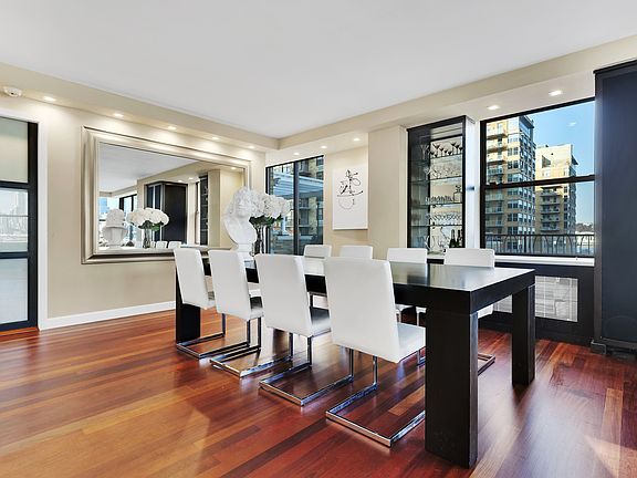 Truly amazing!! This spacious & elegant (2,579 sq. ft.) corner unit with private outdoor space & direct views of NYC features 4 bedrooms 2.5 baths & a separate, large laundry room with 2 washers/dryers. These unobstructed views of NYC will surround you in this stunning home which has been impeccably renovated to the highest level with a Sub Zero & Miele appliance package including a fully integrated coffee & wine system, granite countertops with a breakfast bar that easily seats 8 people comfortably, separate pantry, custom backlit glass-tiled ceiling, cherry hardwood floors, motorized blinds, master suite with walk-in closet, radiant floor, spa like bathroom with hydrotherapy shower heads, Duravit & Porcelanosa fixtures. You can easily use one of the bedrooms as an office/den room or use it for virtual school sessions. This waterfront building includes a 24/7 concierge, gym on 3rd floor, courtyard on 4th floor with play area for children, property manager on site, garage parking (extra) and seasonal pool (extra). Best location in Hoboken with easy access to shops, restaurants, parks, marina, Pier 13 and ferry and bus to NYC.