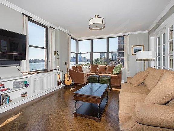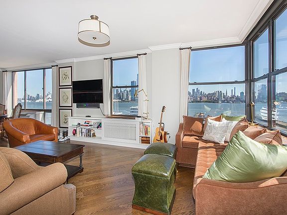 Absolutely stunning unparalleled, unobstructed, direct East facing panoramic NYC views await you from the moment you enter this amazing 2br/2ba home on the Hoboken waterfront. Be amazed by this luxurious unit in a 24/7 doorman building with breathtaking views of NYC. Walk into a beautifully renovated home with an open kitchen/living room. This coveted unit with an abundance of natural light features stainless steel appliances, quartzite counters, custom blinds & plenty of closets. This building couldn't be more convenient to the ferry & bus to NYC, shops, restaurants, parks, marina, waterfront promenade & Pier 13. Other amenities include a gym (3rd fl) & landscaped courtyard on the 4th floor with children's outdoor play area, dual elevators, 2 outdoor pools (fee) & onsite garage parking (fee). Enjoy luxury waterfront living with unparalleled NYC views in this perfect waterfront location!