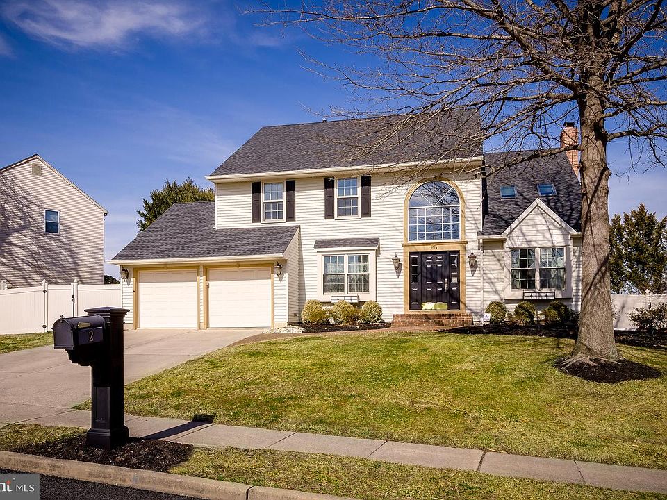 Simply gorgeous 4 Bedroom and 2.5 Bath colonial style home in the Briarwood section of Marlton/Evesham that sits on a corner lot. The interior of this home screams pride of ownership as it is spotless throughout and has been updated throughout. The home boasts an open floor plan with a neutral decor, hardwood flooring, a 2-story foyer, a large living room with vaulted ceilings with skylights, crown, chair, and shadow box moldings throughout, a large family room with new wood flooring, a brick fireplace , and a french door to the back patio, recessed lighting throughout, a large picture window over the front door, newer heating and air conditioning systems, a large dining room off of the kitchen, security system, newer windows throughout, a full finished basement with an office and storage room, a newly updated kitchen with white shaker cabinets, a tile back splash, granite counter tops, a farmhouse sink, and stainless steel appliances that is open to a breakfast room, and top it all off with a large master suite with double doors, plantation shutters, newer wood flooring, and large master bath as well as a custom closet. The exterior of this home offers a new roof, a concrete driveway to a 2-car garage, a brick walkway to a front porch, maintenance free siding, sprinkler system, professional landscaping, a fully fenced-in backyard with vinyl fencing, a large in-ground pool with a new liner, a huge travertine stone patio with a fire pit and bar area, a large hot tub, and all of this on a large corner lot. Don't miss your opportunity to see this wonderful home!