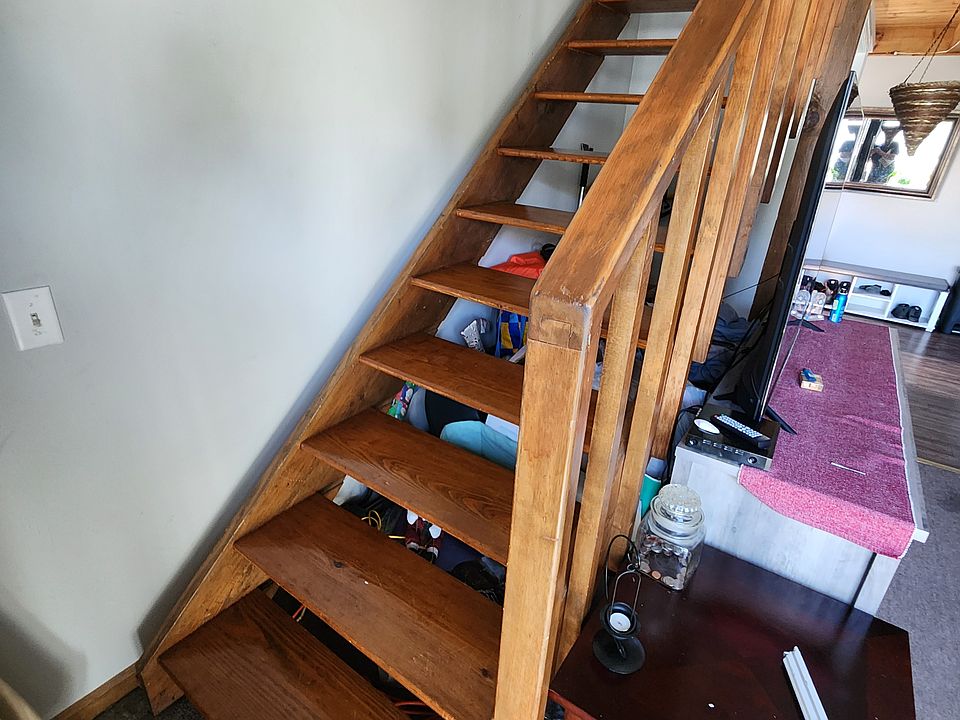 OVERSIZED 1 BEDROOM 2 LEVEL LOFT - One block off Main St on the bike Trail! Smoke free in the Maplewood Shops. The main level has a newer kitchen including a dishwasher, microwave, stove, refrigerator and sit-at peninsula. There is also a large pantry closet and room for a table. The open floor plan with vaulted ceilings to the loft has a good-sized living room, bedroom and sliders to a small deck. The stairs lead up to the open loft area with a half wall looking down to the living room (great for office or media room). The bathroom is off the loft, so you need to pass through the loft for access to the bathroom. There are plenty of windows throughout the apartment for natural light. Exposed beams and freshly sanded wood floors make this exceptional. We have a no pet policy but do make an exception for one cat. Available 6/15/25 this $1995.00 one-year lease includes off street assigned parking and on-site laundry. Tenant pays for electricity (heat, hot water & lights). Landlord provides water. First & Last Month's rent due. One year lease.