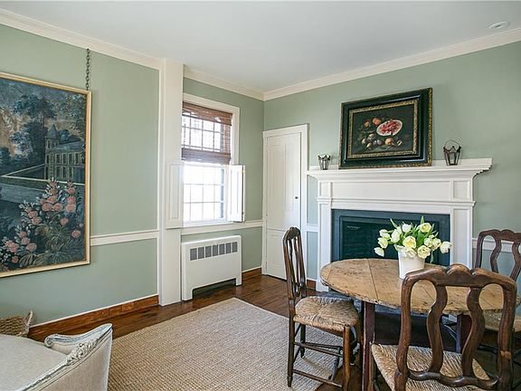 Discover the ultimate retreat nestled within Historic Hill - a luxurious colonial home boasting three bedrooms and three bathrooms. This property features exquisite modern upgrades, including central air conditioning, original hardwood floors, and six fireplaces. Built in 1822 for Michele Felice Corne, a renowned muralist and marine painter who famously introduced the tomato to America, Corne House boasts a rich history. The first level has a spacious living room, a library, and a dining room, all with working fireplaces. Additionally, a chic butler's pantry, a quaint powder room, and a large chef's kitchen with a six-burner Viking stove complete this level. Enjoy intimate meals in the sunny breakfast nook, featuring French doors that open to a meticulously landscaped garden. On the second level, a spacious primary bedroom and bathroom await, featuring both a shower area and soaking bath. Two additional bedrooms, each with en-suite bathrooms, are accessible via front and back staircases. The property is fully enclosed, providing ultimate privacy and seclusion, perfect for enjoying the brick terrace and expansive two-tiered garden, complete with mature plantings, crab apple trees, hydrangeas, roses, and a charming garden shed. A motorized double door gate opens to a cobblestone driveway offering ample parking. Experience turn-key living in this rare gem in pristine condition, located in the heart of Historic Hill, providing easy access to Newport Harbor and Bellevue Avenue.