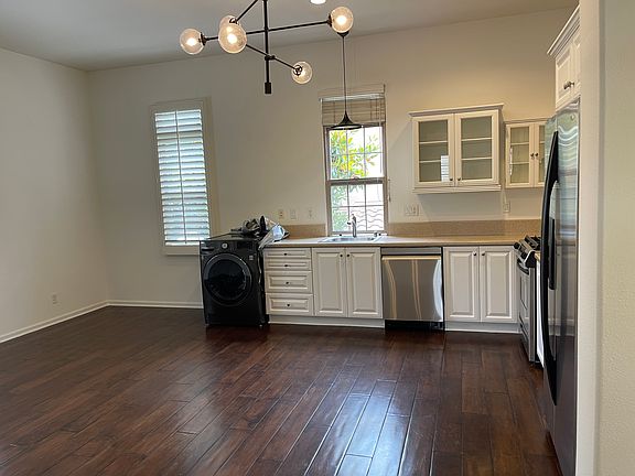 Quiet upper level unit of a DETACHED condo in a private cul-de-sac. Refrigerator and washer/dryer combo included. 1GB high speed internet included. Beautiful hardwood floor and wood shutter throughout. 12 feet ceiling everywhere. Very spacious bedroom and living room with lots of windows and sunlights. 1 attached parking garage and plenty of street parking. Enjoy Woodbury living with 14 community parks, seven pools, private tennis and basketball courts, numerous picnic and bbq areas throughout the luxury resort style community. Close access to Jeffrey Open Space Trail, Woodbury Town Center, and freeways. Owner pays for HOA dues and high speed internet, tenant pays all utilities.
