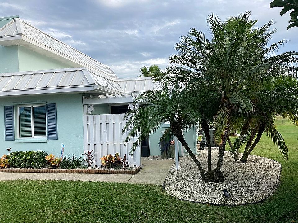 Spacious, private, one story, end unit condominium with open views of golf course in a quiet, prestigious neighborhood. Private entrance and direct access to a secluded yard on the side of the unit. Two assigned parking spaces directly in front of the unit. Tile and laminate floors. Walk-in shower. Large walk-in closets and storage area. split plan for bedrooms. Bright and sunny enclosed porch that serves as an extended living area. Paver patio for outdoor entertaining. Walking distance to schools and Country Club facilities including golf, tennis, aquatics center, and parks. Call or text 321-745-0787 for more information or to schedule a showing. MLS #1001971 - 2% agent commission