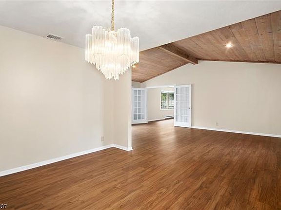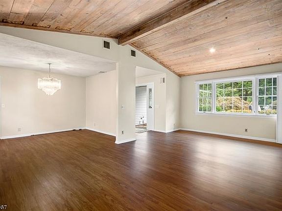 ONE FLOOR LIVING AT IT'S FINEST!!! Flowing Open Concept Ranch located in desirable Mendham Borough. Home boasts much natural lighting throughout. Entire home is freshly painted with new flooring installed. Kitchen area is complete with peninsula seating and plenty of cabinet space. The sunlight family room is graced with a gas fire place and skylight. Enjoy gatherings in a wide-open great room featuring a wood burning stove - perfect to use during cool fall nights. Generous - sized living dining room area is filled with windows and soaring vaulted wood ceiling. Master bedroom includes walk-in closet, full bath, skylight and desk area. Convenient first level laundry room and large mudroom area.