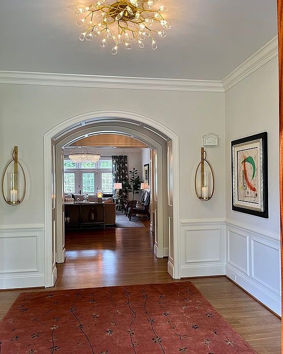 Custom Built by Dewson Construction, this two story home is appointed with the finest features throughout. Grand foyer entry, study/den with custom built-in's, elegant dining room, perfect for entertaining, gourmet kitchen with custom wood cabinetry, commercial appliances to include a 42 inch paneled sub-zero, six burner Wolf range & wall over, tile backsplash and separate breakfast room. The main level also includes a spacious family room with two-sided fireplace, wainscoting and patio doors leading to rear deck, main level master suite with walk-in closet and private bath with air jet tub, double vanities, stall shower w/framless door & marble tile and laundry/mud rooms. The upper level offer four bedrooms, 3 baths, bonus room and full-staircase to unfinished 3rd floor. Other features include a finished lower level with exercise room, family room with custom built-in's, full bath, wine room, unfinished storage, three car garage, 10ft main level ceilings, extensive moldings, built in speakers and spacious rear Trex deck overlooking the well landscape rear yard. This property shows like a new home.