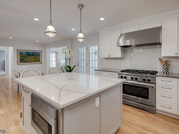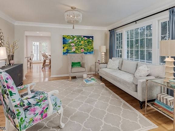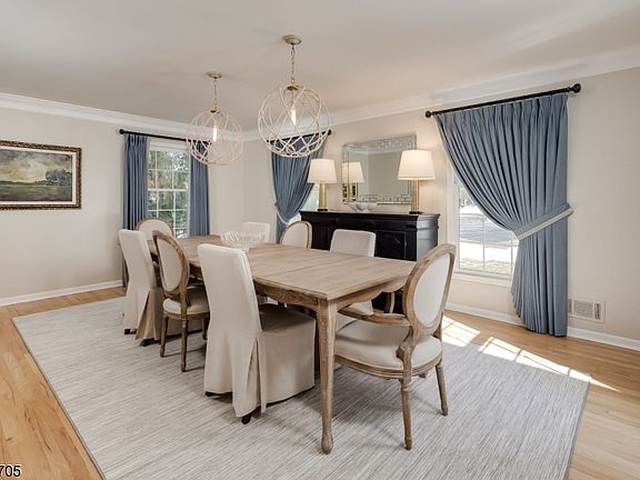 Stunning Colonial Infused With Designer Style An extensive renovation process touched every part of this chic and polished Colonial in the sought-after " Deer Ridge " neighborhood, just outside the historic village of Mendham. As a result, the sun-splashed five bedroom residence showcases an impressive degree of designer elegance within its 3,400+square-foot open floor plan which offers additional living space in the 2018-finished lower level. Situated on 0.87 acre of level, landscaped property, the home takes in serene tree-lined views from an expansive rear deck. A new Macadam driveway was installed in the Fall of 2019 as well as a whole house generator in 2021. Bold, colorful design elements from Jennifer Connell Designs were introduced in 2018 and 2017, infusing the layout with high-end lighting, wallpaper and window treatments. Hardwood floors, deep crown moldings, a Heatmaster gas log fireplace and neutral paint colors are additional highlights of this sophisticated residence. Introducing the home is a soaring foyer featuring a turned staircase, ornate crown moldings and sightlines into some of the main spaces. Both the living and dining rooms present hardwood floors, deep crown moldings and modern light fixtures. Of special note is the wide array of upper-end finishes in the kitchen, a bright, airy space featuring custom white cabinetry fitted with handles and drawer pulls from Restoration Hardware, a center island and upscale appliances including a commercial-grade dual fuel convection range, warming drawer and refrigerator from KitchenAid, Marvel refrigerated drawers and wine refrigerator, Fisher & Paykel dishwasher drawers, Sharp microwave drawer and Kraus commercial-style sink. The sun-filled dining area offers French doors to the rear deck. Opening from the kitchen is a cathedral ceiling family room warmed by the glow of a floor-to-ceiling gas log brick fireplace. Two skylights and sliding glass doors to the deck fill this room with natural light. New grass cloth wallpaper lends dimension and texture to a private study lined in crown moldings. A powder room presents a Carrara marble-topped vanity and Thibault wallpaper in a whimsical graphic pattern. Custom built-in cabinets, a door to the yard and the stainless steel LG washer and dryer are stylish laundry room amenities. Upstairs, an updated master suite is a tranquil retreat providing a master dressing area with elegant built-in cabinetry and a walk-in closet. The dressing area connects to a sumptuous master bath filled with spa details such as a quartz-topped double sink vanity, indulgent soaking tub, seamless glass door shower with multiple sprays, and subway tile walls edged in Carrara marble accents. Three more bedrooms on this level share another updated full bath with a quartz-topped double sink vanity. There is also an unfinished bonus room measuring nearly 300 square feet. A spacious finished lower level presents 2018 luxury vinyl plank flooring in the media, lounge, exercise, and game areas. Two well-appointed bonus rooms have carpeting and ample closet space. The lower level is completed by a full bath with shower, utility areas and storage space. Additional highlights are a recently updated HVAC system, Aprilaire humidifiers and a security system. Recognized by NJ Monthly magazine as the Top Town in Northern New Jersey, Mendham Borough is one of New Jersey's most-coveted locales. Centrally located minutes from New York-bound Midtown Direct train service in neighboring Morristown, Mendham Borough is famed for its picturesque landscapes and historic town center with shops, restaurants and highly-rated schools. Community events include an annual antiques show in the spring sponsored by The Rotary Club, a spirited 4th of July parade and all-day celebration, a popular Labor Day parade, carnival and fireworks display, and the annual Holly Walk every December welcoming the holiday season to shoppers in the Borough. Conveniently located in Morris County, Mendham is less than 50 miles from Manhattan and under 40 miles from Newark Liberty International Airport.