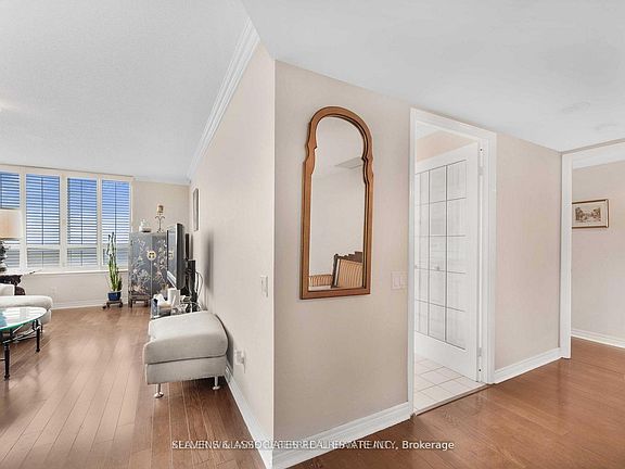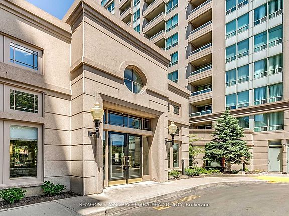 Penthouse corner suite at Encore Towers! Bright and spacious 2-bedroom, 2-bath layout with split bedrooms and open above-the-treetops views. Large windows with California shutters provide great light and privacy. Updated family-sized kitchen with ample cabinets, double S/S sink and eat-in area. Primary bedroom with 2 closets and private ensuite. Hardwoods floors, covered balcony, parking and locker included. Well-managed building with 24-hr concierge, Sabbath elevator, outdoor pool, guest suites and visitor parking. Steps to Lawrence Plaza, TTC, Allen Rd & 401.