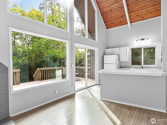 Light & bright home with tongue & groove pine vaulted ceilings and a spacious loft for additional bedroom or living space. Brand new carpet and paint.This is cozy cabin meets modern comfort: mini split for heat & A/C, lots of natural light, a private feeling lot and a dreamy rear deck with sounds of the creek running along the property line. Convenient location in Sudden Valley just a few turns of Lake Louise Rd. A great value - see it in person before it’s gone!