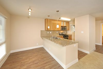 Ground floor 2 bedroom, 2 bath with granite countertops, stainless steel appliances and gas range. Central AC and heat. Enginered hardwood flooring in the kitchen and seperate dinning. Rainfall shower head in bathroom. Large bedroom with his and hers closets.
