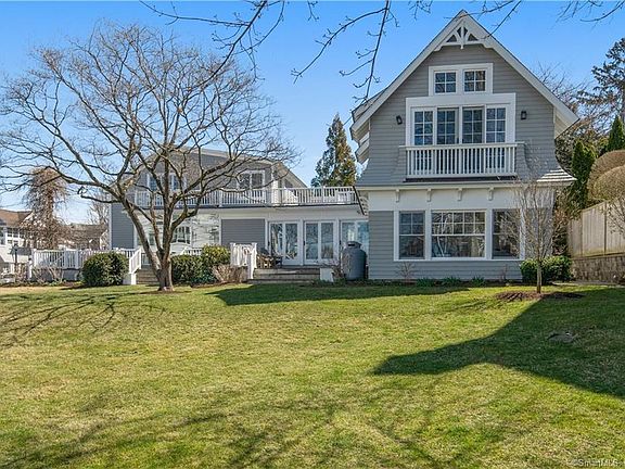 Perched on a knoll overlooking the Five Mile River, 2 Crockett St combines Rowayton charm and spacious chic. Water views from every room. Expansive yard and wrap around patios offer unpressidented open air space, including a private patio w outdoor fileplace, perfect for all season entertaining. The main floor, with oversized windows, flows from living room to dining to kitchen and family room, includes multiple gas fireplaces and places to relax and take in the sea air. Ground floor master option with 4 additional bedrooms on the upper levels. Get ready for summer in Rowayton. Launch your kayak or paddle board from the community dock just steps away, walk to village resturants, shops, beach, tennis, library, dog park, nature preserve and more. 60 mintues to NYC.