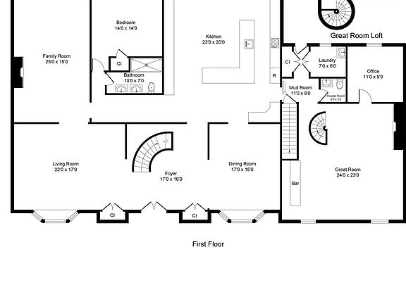 - Balcony, Center Hall, Conservatory, Dec Molding, Housekeeper Qtrs, Spiral Stairs, Wet Bar, Recessed Lighting