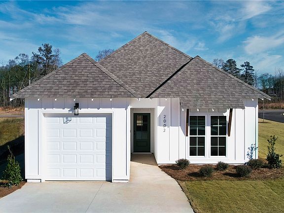 Come tour this beautiful 3 bedroom, 2 bath home with 1365sq ft. The front door of the home opens to a foyer with access to your single car garage. Opposite the foyer, you find bedrooms 2 & 3, with a shared full bathroom. Beyond the foyer, you enter into an open concept kitchen, living, & dining areas. The kitchen features a large island, granite countertops, Delta plumbing fixtures, soft close cabinets & drawers, & ample lighting. Across the kitchen is the dining area that flows into the living room featuring windows allowing lots of natural light & access to the covered back porch. The primary suite sits at the back of the home & features a private en-suite with a large walk in closet, floating shelving for linens, & a single vanity.