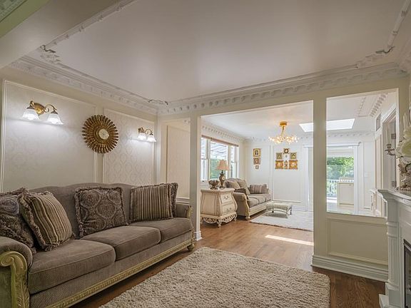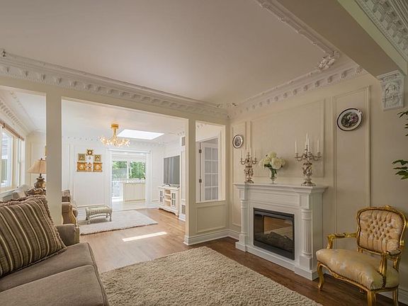 - Din Dscrp: Flooring - Hardwood, Fireplace, Exterior Access, Slider, Crown Molding, Decorative Molding