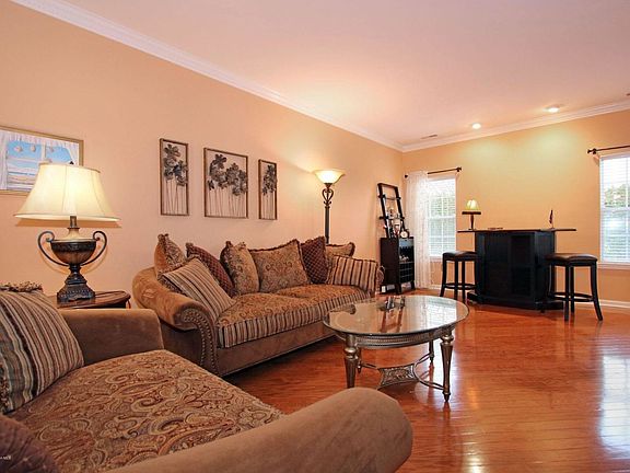 The Villas at Jumping, one of Monmouth Countys best kept secrets! Ideally located and convenient to parkway, shopping and beaches. This Augusta model with den is situated on large corner lot. Paver walkway leads to covered entry with leaded glass door. Foyer with HW floor leads to open concept living, dining and kitchen. The sunny den with sliders to private expansive paver patio with retractable awning. Master bedroom features tray ceiling, a walk in closet with built ins. The master bath has been recently redone with large double vanity, custom shower and soaking tub. Additional guest bedroom and bath at other end of home offer great privacy. Great opportunity to join this wonderful community.