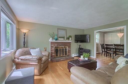 Downsizing or looking for your first home? You ll love this charming, beautifully maintained ranch located on a dead-end street in a quiet neighborhood abutting conservation land. This home has everything on your wish list from HW floors, a wood burning fireplace in the Living Room, 3rd bedroom currently being used as a Dining Room, has wall sconces & a closet. 2 bedrooms have lots of natural light. Convenient 1st floor laundry in the bathroom. Eat-in kitchen with maple cabinets, recessed lighting, tiled floor, ceiling fan and desk area. Large composite deck overlooking a manicured yard is perfect for entertaining guests. Lower level includes a spacious family room/home office with a newly installed tiled floor and ceiling w/recessed lighting. Another full bath and an extra room, currently being used as a bedroom finish off the lower level. Reading is known for its great schools, vibrant downtown, Library and commuter rail. Close to Lake Quanapowitt with easy access to 128.