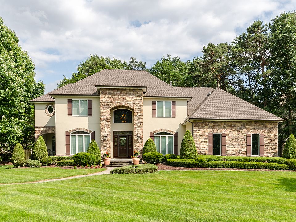 This elegant Estate home is set on a beautifully landscaped corner lot. The entire facade of the home has newer stucco & stone as well as all new Anderson windows.The farmhouse shutters and carriage garage doors are nice additions. From the minute you pull up you will be impressed. The grand 2 story entrance has hardwood floors, wainscoting & exceptional architectural details. The wrought iron railing compliments the hardwood stairs with runner. The split staircase and foyer have magnificent wainscoting. The formal living room has crown molding & a French door leading to a portico. The formal dining room has magnificent molding and and decor. The expansive DR can accommodate a large table. The over the top custom Buzzeta kitchen has an oversized center island, glazed 42" cabinets, grade Wolf 6 burner stove, 36" refrig, 36" subzero refrig. There are custom details throughout. The recent kitchen remodel was in excess of 100,000. The breakfast area has a slider leading to the covered porch with mahogany ceilings. The 2 story room has coffered ceiling & custom trimmed fireplace. The family room is open to the kitchen for ease of entertaining. The first floor office has tremendous millwork & built in bookcases with neutral Karastan carpet. The PR has a furniture sink base. The luxurious master suite has a tray ceiling with custom molding & a sitting area. French doors lead to the elegant bath with a soaking tub, oversized stall shower with body sprays & multiple heads. The custom cabinets and tile work is gorgeous. The bath resembles a spa in a 5 star resort. The hallway leading to the other bedrooms is open to the first floor. The bedrooms are all ensuite. All the bedrooms have wide plank hardwood floors & neutral decor. The baths have all been recently upgraded with top of the line cabinets & granite countertops, and ceramic tile. The full finished basement has a built in theater area, a wet bar, a full updated bath, a possible 5th bedroom, and a gym. In addition, for the wine enthusiast, there is a wine cellar that holds hundreds of bottles of wines and is temperature controlled. A fabulous place for entertaining. The backyard has a sport court and a covered deck for all your outdoor entertaining. Exceptional custom details are found throughout this home including all upgraded custom lighting. Recent remodels and upgrades are in excess of $375,000. Newer roof, windows and HVAC This home shows like an Architectural Digest Model.