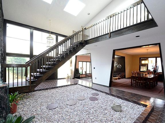 - Interior: Attic, Recessed Light, Sliding Door, Ceilings - 9Ft+ 1st Flr, Skylight, Atrium, Spiral Stairs, Den, Security System
