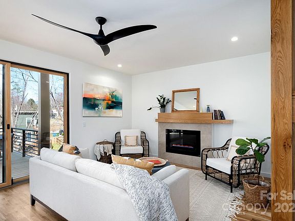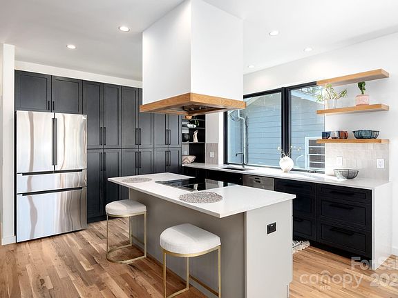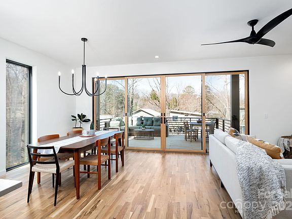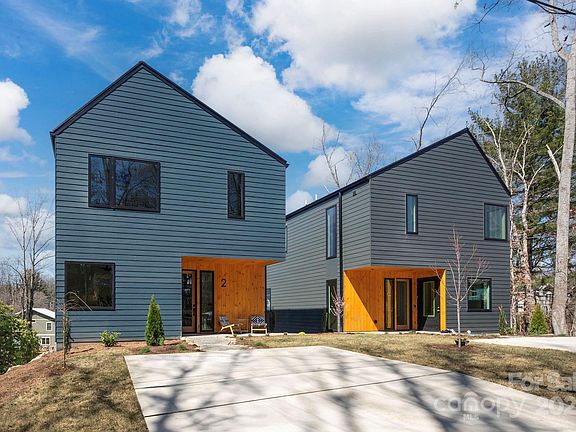 Brand new Modern Scandinavian home by award-winning Rusafova Markulis Architects, built by JAG Construction. Luxury details abound in this GreenBuilt and Energy Star house, including a custom metal/wood staircase, oversized double sliding doors and high end fixtures. Ideal location on a quiet street close to West Asheville Park, shopping and dining. The spacious, light-filled plan creates a welcoming environment. Gourmet kitchen features quartz counters, Bosch appliances, induction range, freestanding hood and floating shelves. Jaw-dropping primary suite boasts a soaring vaulted ceiling, large walk-through closet, and a spa-like ensuite bathroom with a soaking tub and zero-step entry tiled shower. The huge finished daylight basement makes a perfect in-law suite or Homestay/Airbnb. Oversized double decks have stairs to the peaceful yard with a mountain creek (did not flood in Helene). Ample space with 4 beds, an office, 2 living areas, 2 laundry rooms and over 3100 sq ft. See brochure.