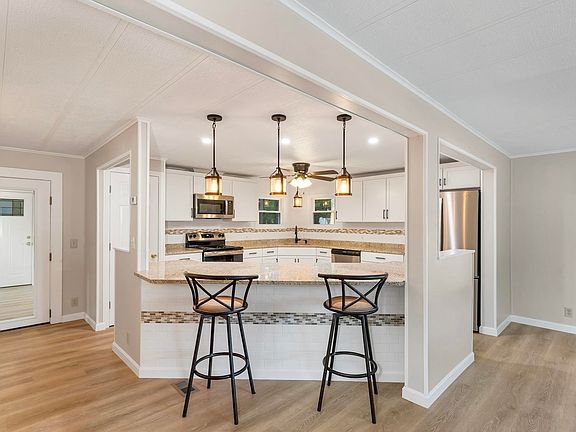 PRICE REDUCED!!! Welcome to this beautiful (55+ community) Double Wide Manufactured Home! This home has been totally remodeled and updated, take a look at the main feature of the Master Suite, with a walk-in closet you can fit a bear in, as well as a large updated bathroom. This home features a New metal roof, new skirting, updated plumbing and fixtures. New lights and ceiling fans, New furnace, Totally remodeled kitchens and bathrooms, Granite countertops throughout. New Carpeting, vinyl plank flooring throughout. All new vinyl replacement windows, Newer water heater, a stunning new additional 3- Season porch where you can sit and relax while enjoying a nice beverage. If you want to live in this peaceful park, with a like new condition home, then this is the place for you! OPEN HOUSE FRIDAY 10/20 4:30-6:30pm