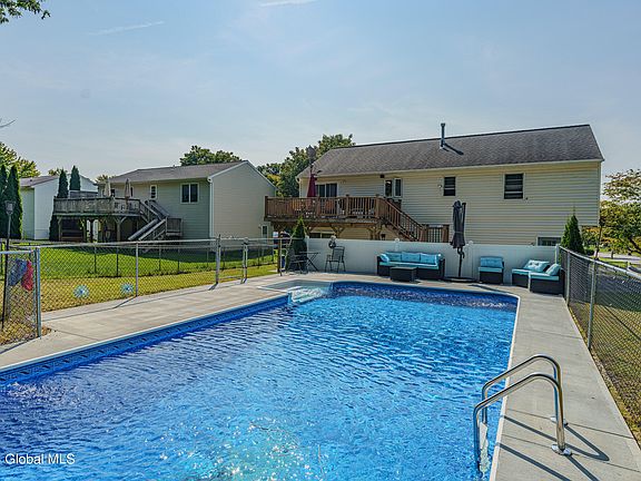 Back on market.. buyers had cold feet, their loss is your gain! HUGE Price improvement.. Spacious home in South Colonie SD. Don't miss this 3 bedroom 2 bath home on a cul de sac (side)/corner lot in the Rolling Hills Community. So many wonderful features including solid surface counters in the kitchen, new double vanity in the upstairs bath, paver walkway, gutters, central air and more. Downstairs is a great flex space that can be either a master bed with bath or a family room. Backyard is a great entertainment space with a maintenance free deck, fenced yard, firepit and BEST OF ALL a 3 year young 16x32 ft inground heated saltwater pool with LED lighting. Call today.