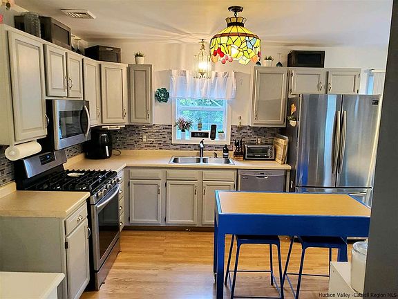 Bright, cheerful and well maintained 3 bedroom, 2 bath home in extremely convenient location. The main floor features a cozy and inviting living room that flows into the cook's kitchen equipped with stainless steel appliances and freshly painted cabinets. From there move to the lovely dining area with sliding glass doors leading to the deck. Down the hallway you will find a full bathroom and two nice sized bedrooms (one with a walk-in closet). The downstairs boasts a 3rd bedroom with attached bonus room and sliding glass doors leading to the patio/yard. A full bath, laundry room, and an additional bonus room that would make a perfect home office, den, gym, guest room, in-law suite, or man cave. The backyard is great for entertaining, fully fenced with three gates for easy entry, and a lounging area with fire pit. Convenient location close to Kingston, Saugerties and minutes to the Kingston Rhinecliff bridge. Enjoy parks along the Hudson River and all the wonderful restaurants, shops and recreation this area has to offer.