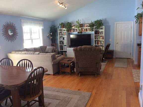 Better than new this 7 yr. old ranch has many updates. Interior has been recently painted, newer Nest thermostat, whole house water filter system, shed with loft area for more storage finished bedroom, and large rec. room in lower level. It's bright and cherry open floor plan includes living room, dining room and kitchen which is a wonderful gathering space. Hardwood floors in living room and dining room, vaulted ceiling with lots of recessed lighting, and sliders overlooking patio and huge fenced in flat backyard. Master suite has two oversized closets, ceiling fan, recessed lighting, is cable and internet ready, with a large full bath with extra large closet. The two car garage with openers is also oversized with walls of shelves for storage. This house is as neat as a pin with tons of storage. This location is a quick commute to anywhere in the 5 College area. Don't miss out come view this home and you'll be pleasantly surprised.