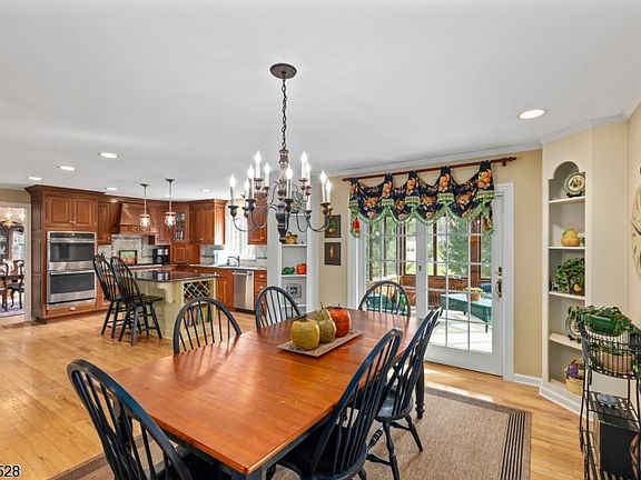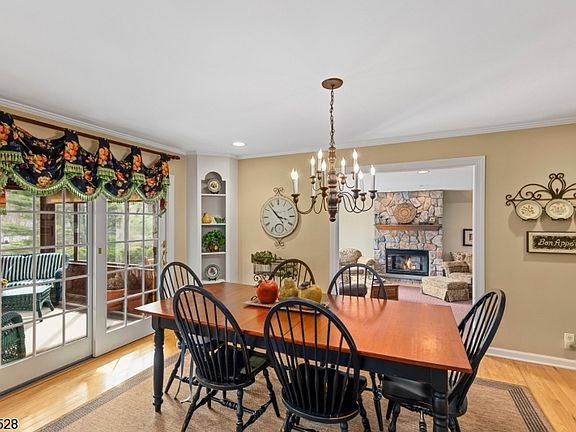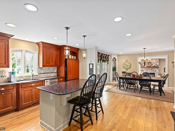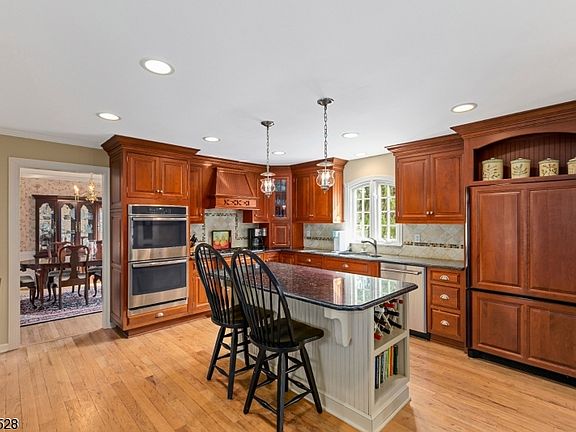 A wonderful center hall Colonial encompasses five bedrooms, three full baths and a powder room on almost an acre of level property. The paver walkway leads to a covered front door accented by classic pillars. The flowing floor plan offers a formal living room anchored by a wood-burning fireplace and adjacent formal dining room. An updated kitchen features granite counters, an island with seating and wine storage, spacious separate eating area, built-in desk and storage, built-in display shelving and a sliding door opening to a peaceful screened porch. A generously-proportioned family room is open to the kitchen and contains a stone floor-to-ceiling gas fireplace. French doors leading to the patio create a sun-splashed gathering space. A well-planned mudroom allows for efficient coming and going with two closets, a storage bench and shelf with hooks and beadboard wall. An adjacent two-car garage with new doors has high ceilings. The guest powder room completes this level, with hardwood floors throughout. Upstairs, a light-infused primary suite is designed with a vaulted ceiling, walk-in closet and bath with shower and double vanity. Four additional bedrooms and two full baths are also located on the second floor. A finished basement is another inviting space for leisure activities. Outside, a paver patio and backyard are perfect for warm-weather entertaining. Charming Mendham is home to award-winning schools, local eateries and independent shops; it is a short drive to vibrant Morristown for Midtown Direct trains.